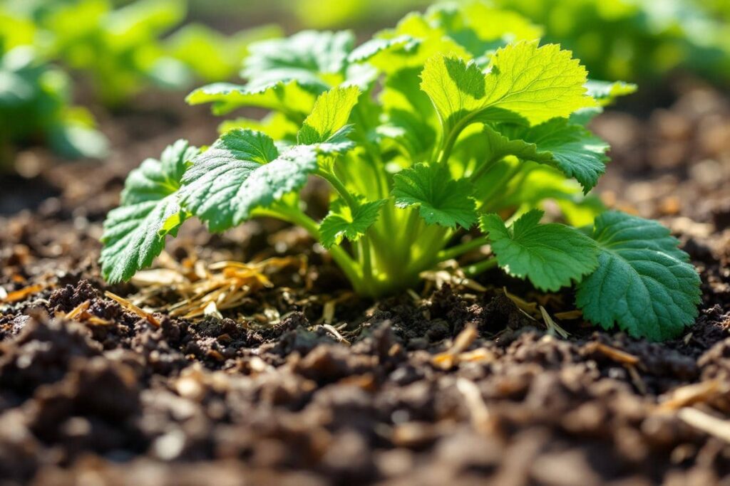 Dekk jorda med mulch av halm eller løv. Det demper fordamping og skaper jevn jordtemperatur. Vann tidlig morgen eller sen kveld for best effekt.